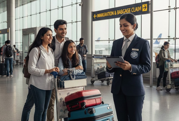 Indian Airport Assistance offers a premium meet-and-greet service at major Indian airports, supporting passengers with immigration, baggage handling, airport transfers, and VIP lounge access. Our trained staff welcomes you at the terminal, guides you through all procedures, and guarantees a smooth, stress-free journey.
